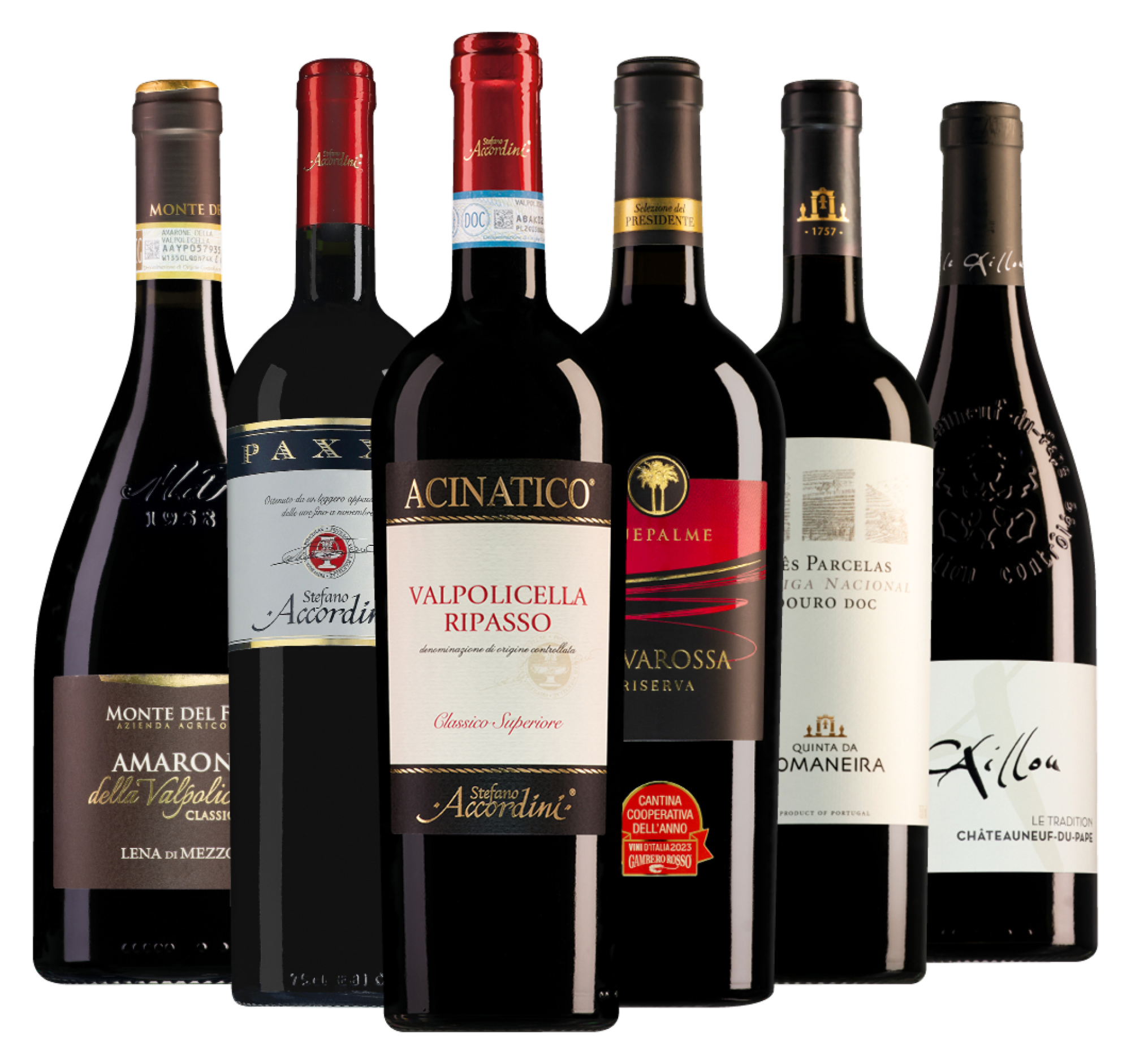 Uzelf en uw gasten extra verwennen bij het kerstdiner? Ga dan voor ons traditionele pakket met luxe rode kerstwijnen. Het bevat geliefde klassiekers als Amarone, Ripasso en Châteauneuf-du-Pape. Perfecte wijnen om uitgebreid van te genieten, bijvoorbeeld in combinatie met krachtige wild-, stoof- of paddenstoelengerechten.
