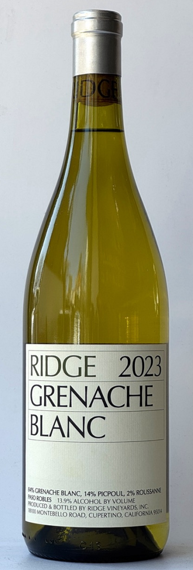 De Ridge Grenache Blanc is een bijzondere Californische witte wijn van het gerenommeerde Ridge Vineyards, een icoon in de Amerikaanse wijnwereld dat sinds de jaren 60 internationaal bekendstaat om zijn elegante, terroirgedreven wijnen. Deze Grenache Blanc komt uit Paso Robles (Central Coast, Californië), waar koelere klimatologische invloeden en kalkrijke bodems ideaal zijn voor Rhône-variëteiten.